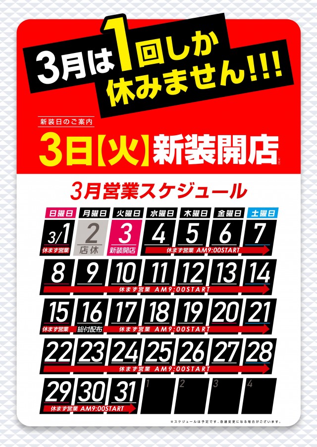 | 定休日 | 新装開店の前日 |