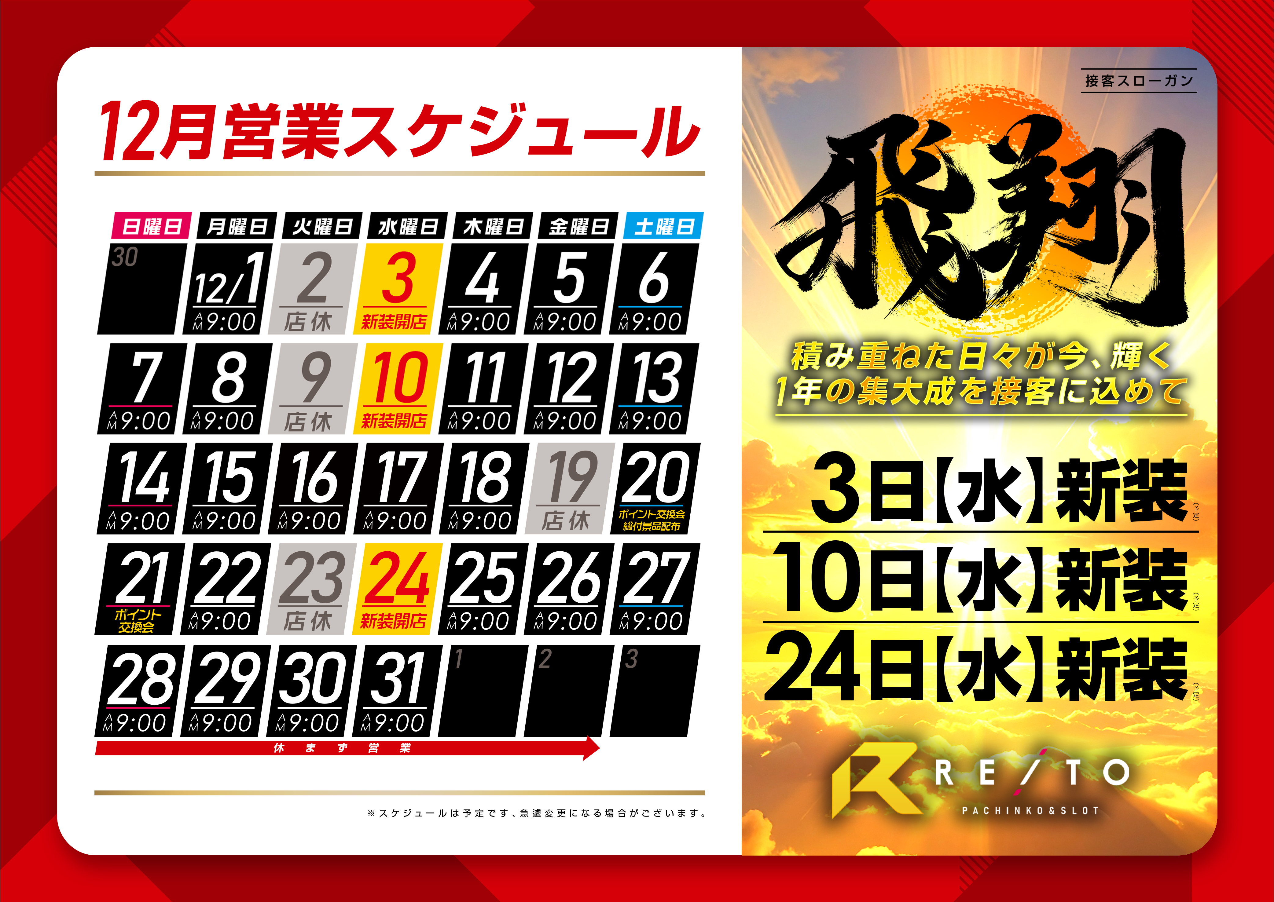 | ルール詳細 | AM8:30迄にお並び頂いたお客様で店頭抽選にて入場順番を決める抽選を行います。 |